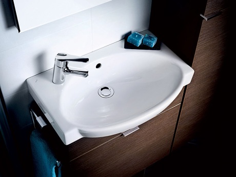 Vedle klasického umyvadla se nabízí i možnost výběru umyvadla na desku neboli umyvadlové mísy. To se uloží na pult, skříňku či stolek a tím docílíte většího odkládacího a úložného prostoru pro nezbytné potřeby. Prodává se v kruhových, oválných či hranatých tvarech.