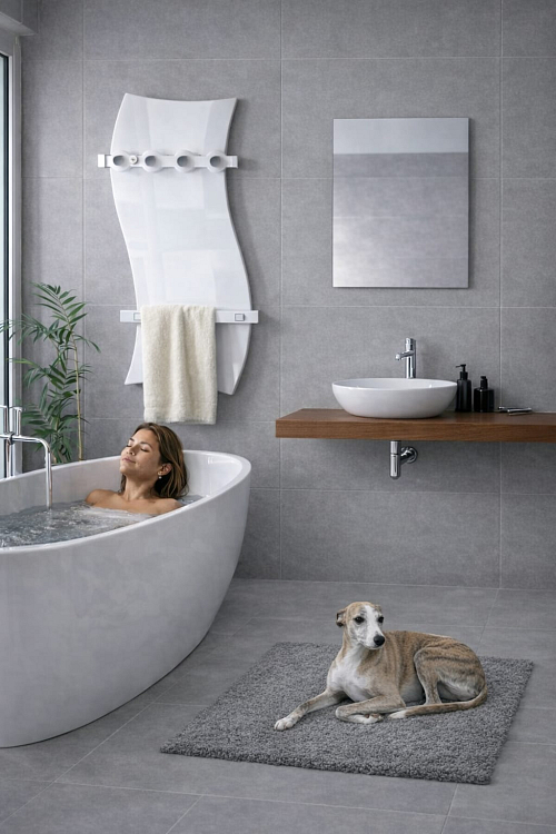 Topný panel pro instalaci na stěnu. Provedení v různých tvarech a možnost volby odstínu.